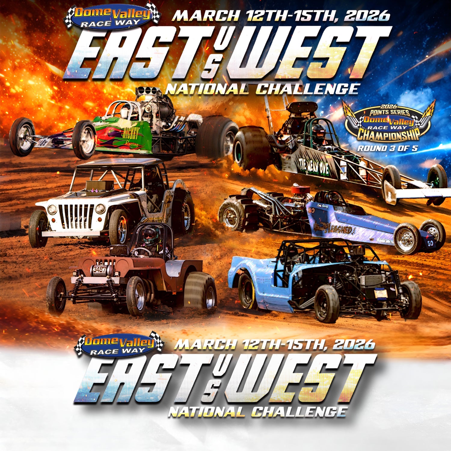 The DVRW 2026 Points Series Championship brings you the DVRW East vs West National Challenge. All racing categories will be battling it out from Blown Top Alcohol Fuel cars to Jr. Dragsters!